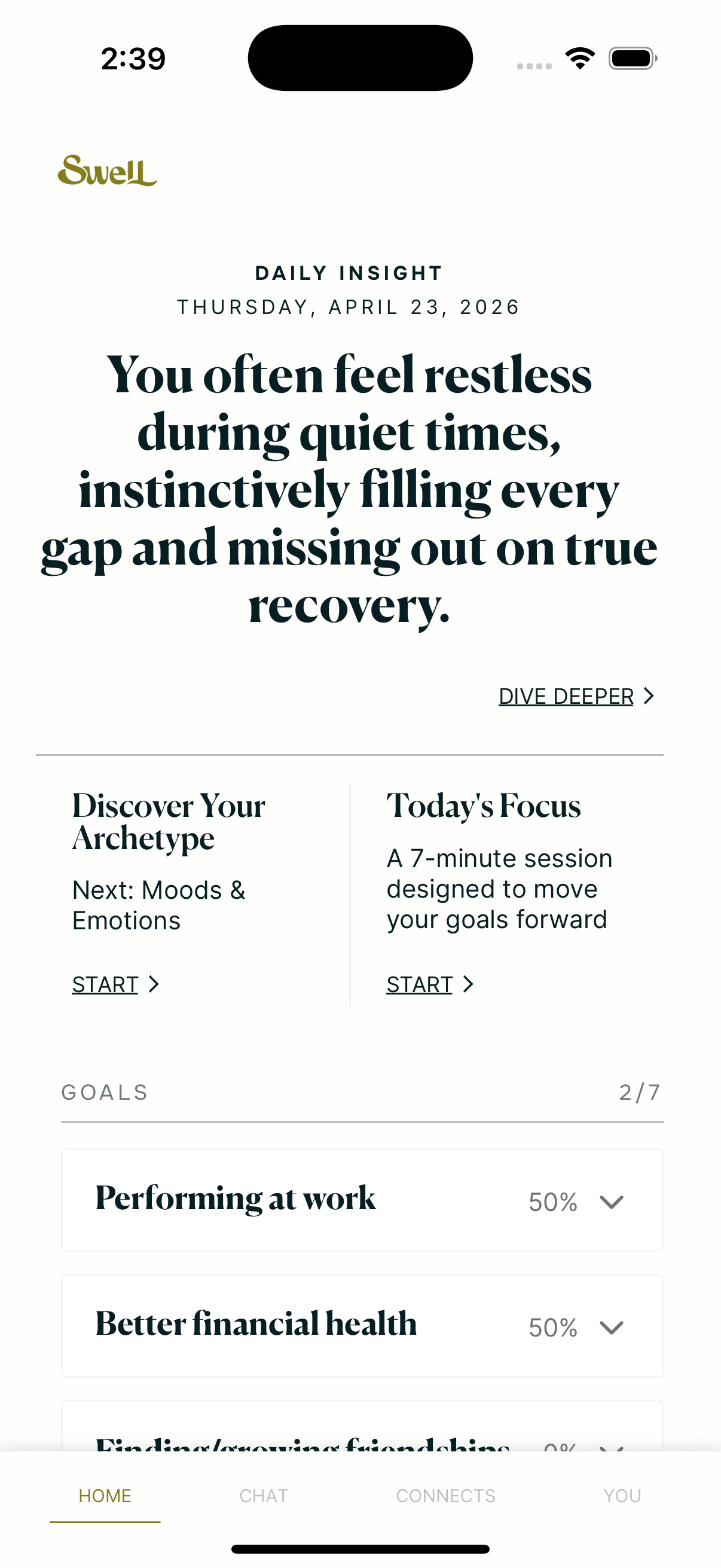 From your archetype to your daily coach, every part of Swell is built around how you actually think and live. See the full tour.